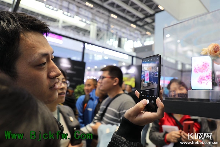 2019中国国际数字经济博览会上,维信诺柔性屏显示技术吸引参观者驻足。记者 烟成群 摄